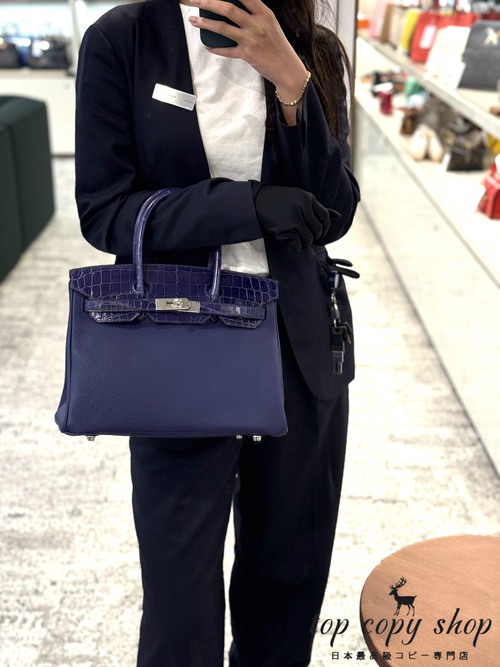 エルメス バッグ スーパーコピー バーキン30 タッチ ブルーアンクル (M3) トゴ クロコダイル アリゲーター リセ シルバー金具 D刻印