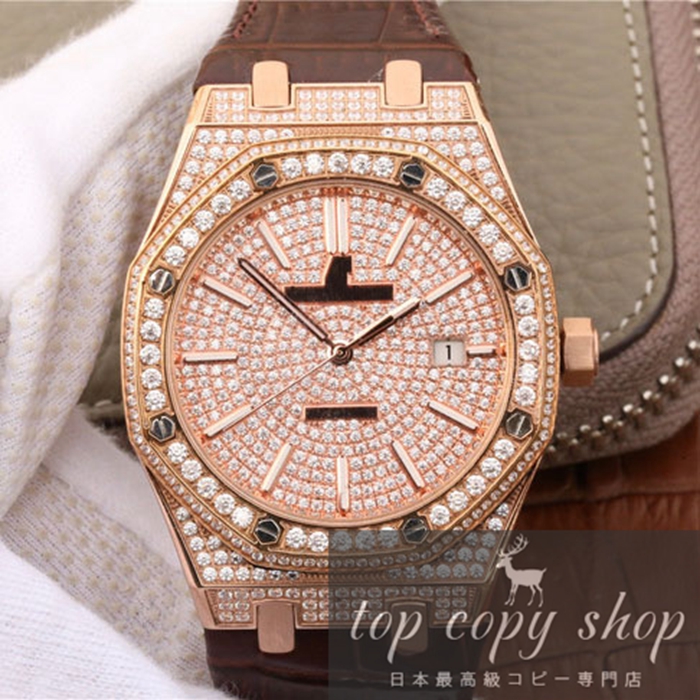 オーデマピゲ スーパーコピー スイス ETA7750 搭載 28800振動 ロイヤルオーク 41mm 15400ST.OO.1220ST.02 メンズ時計 自動巻き Swarovskiダイヤモンド 18Kゴールド